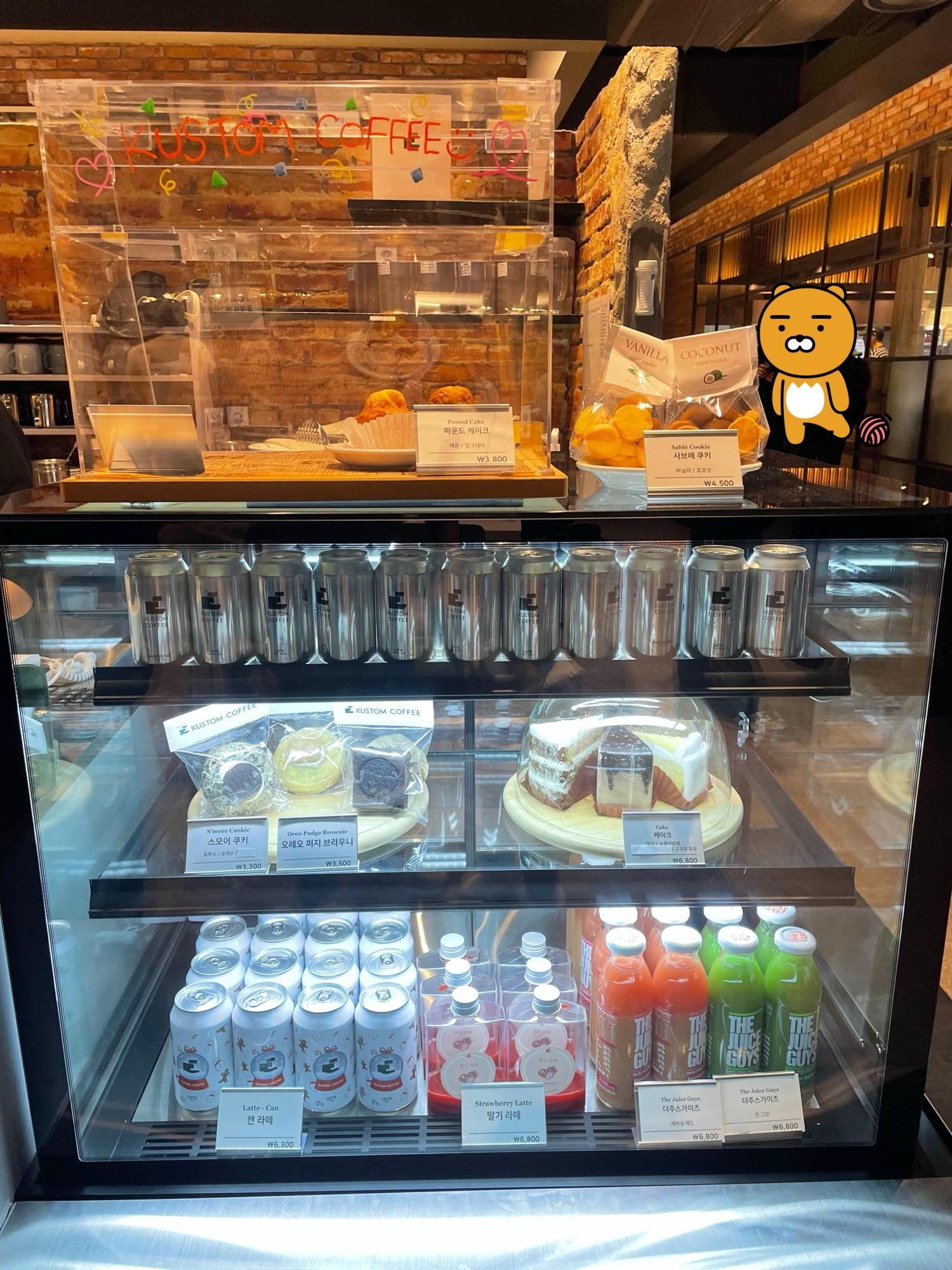 커스텀 커피는 다양한 디저트 메뉴도 준비되어 있어요. 커피와 곁들여 먹으면 금상첨화! 쇼핑의 피로를 달콤하게 풀어줄 디저트와 커피의 조합은 어떨까요?