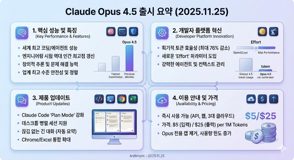 Opus 4.5는 단순 모델 업그레이드가 아니라 개발자 생태계 자체의 확장을 함께 포함하고 있습니다.