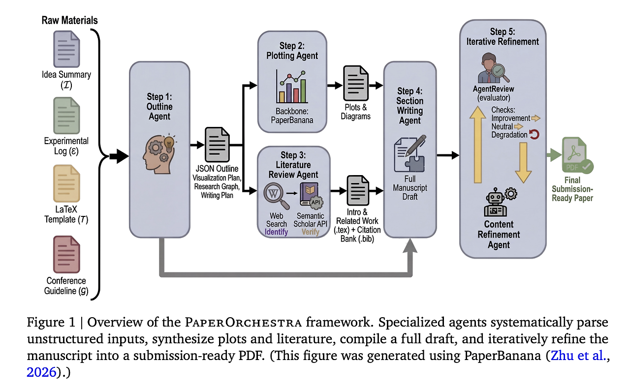 PaperOrchestra는 Google Cloud AI Research 팀이 제안한 독립형 논문 작성 프레임워크입니다.