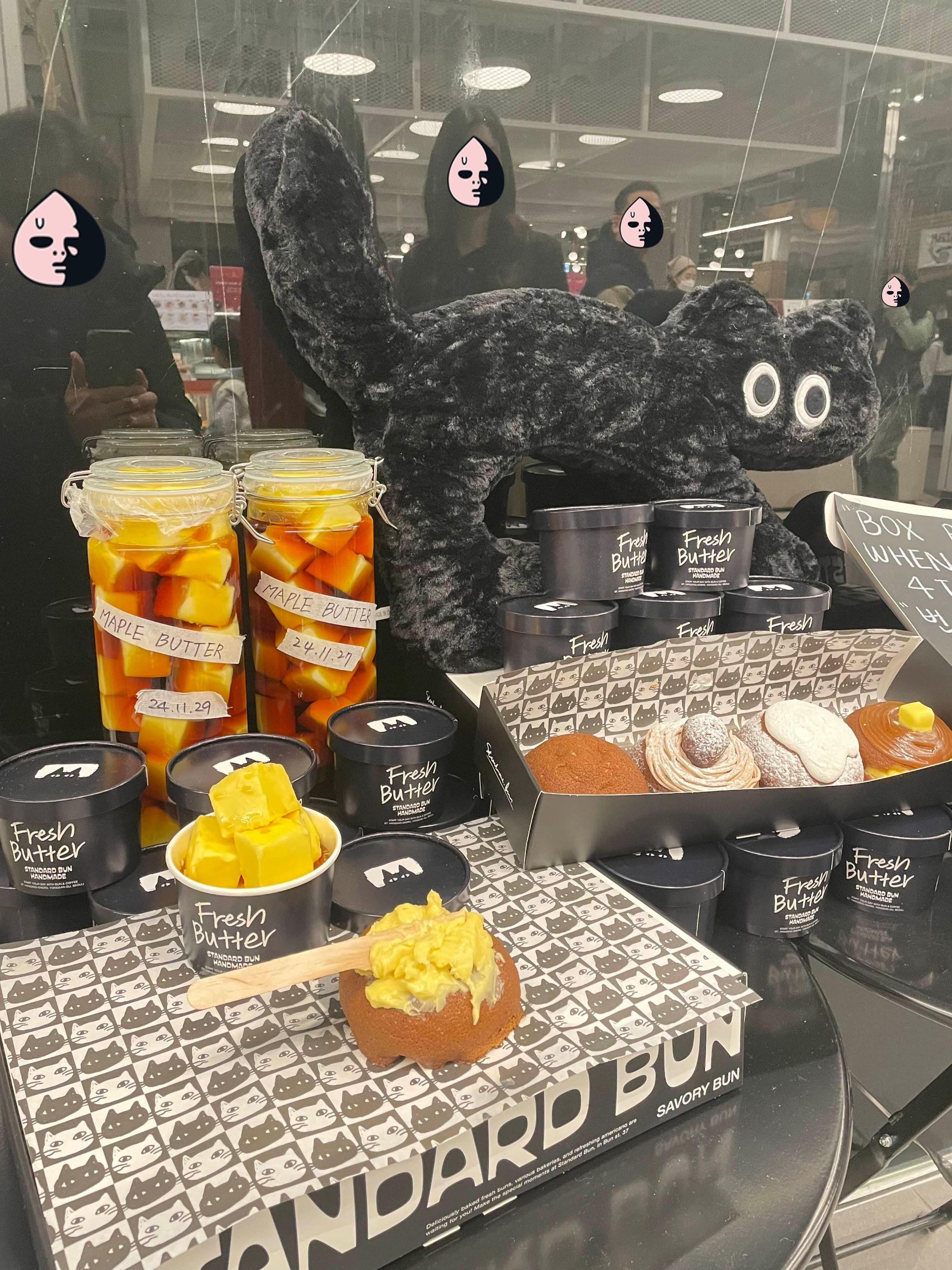 Standard Bun의 상징은 귀여운 검은 고양이입니다. 이번 팝업 스토어에서도 그 매력적인 아이콘과 함께 힙한 인테리어를 만날 수 있어요. 전체적으로 검은색과 흰색을 활용한 감각적인 디자인이 돋보이며, 어디서 찍어도 예쁜 인증샷 명소가 될 거예요.