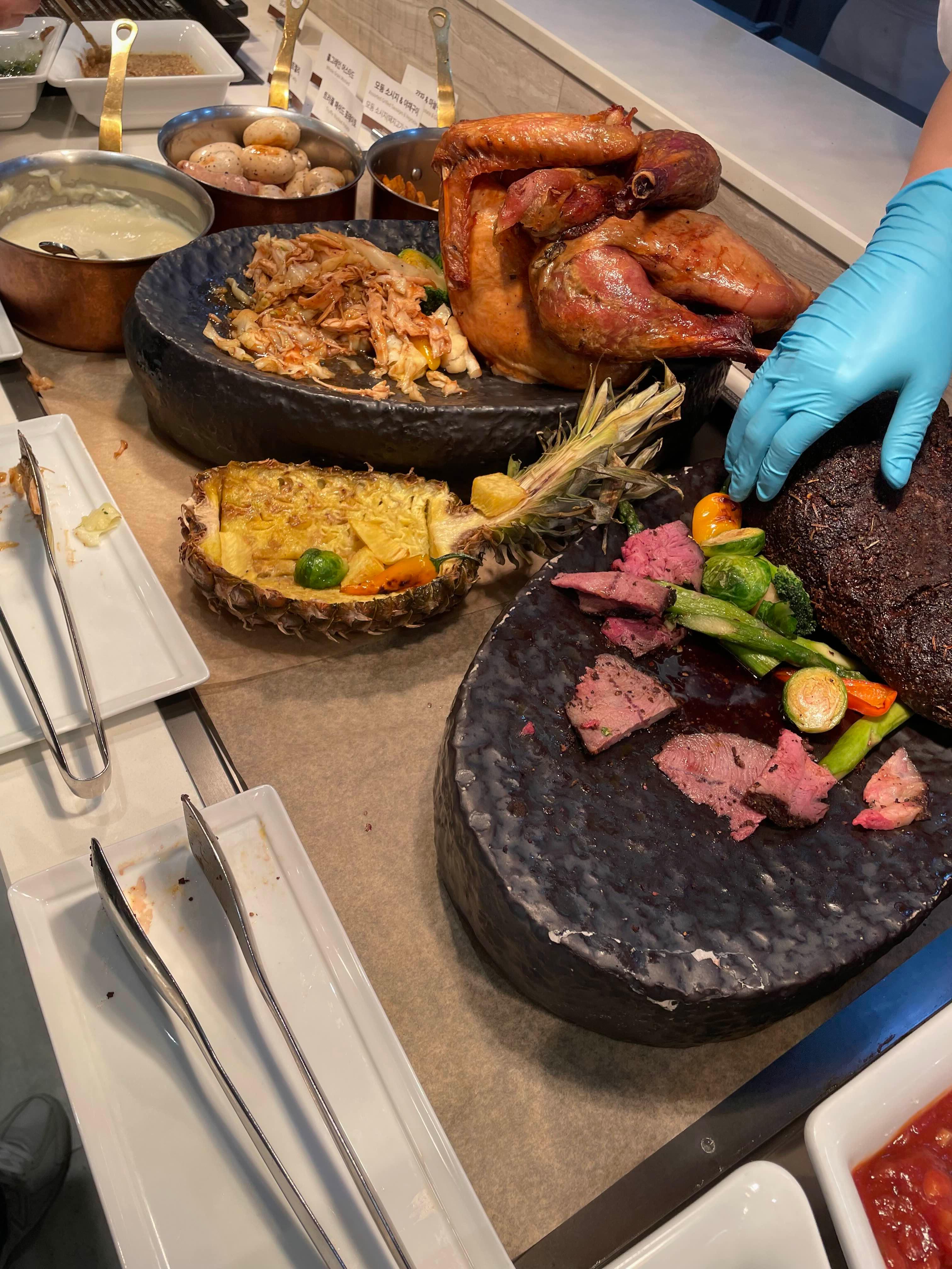 63뷔페는 맛있는 요리들로 가득 차 있기로 유명하죠. 용산점에서도 그 명성에 걸맞은 다양한 메뉴를 경험할 수 있었어요.