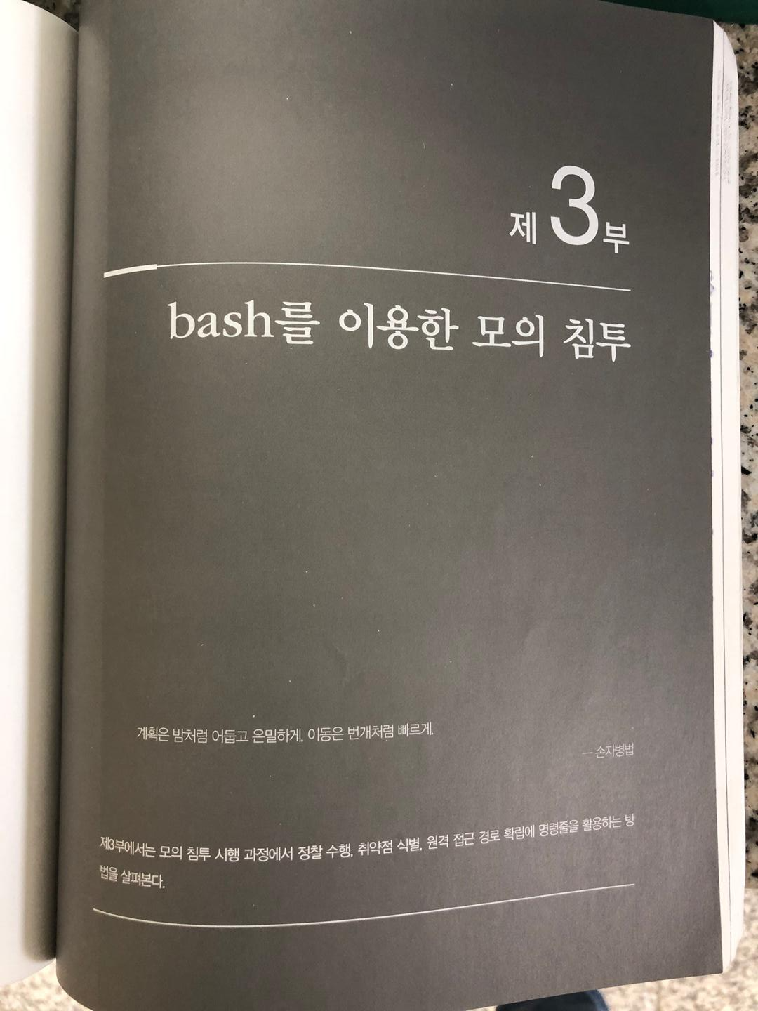 즉, 가볍고 어디서든 사용 가능하다는 장점 때문일 것이다. 이런 bash를 통해 보안에 대한 전반적인 내용을 소개해주고 있다. bash에 익숙하지 않은 사람도 문제 없다. 이 책을 본다면 기본적인 문법부터 필요한 내용들을 설명해주기 때문에 쉽게 따라갈 수 있다.